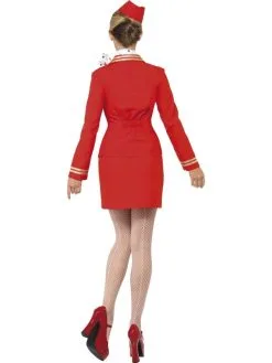 Britney Spears Trolley Dolly Stewardess Kostuum. Inbegrepen is het rode stewardessen jasje, de rode rok, het sjaaltje en het rode hoedje. Leuk voor Carnaval of een Famous people themafeestje.