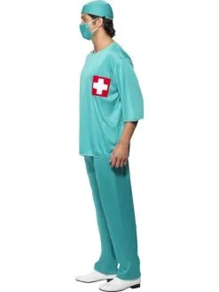 Chirurg Dokter Heren Verkleedkleding. Inbegrepen is de tuniek, de broek, mondkapje en hoofdkapje.
