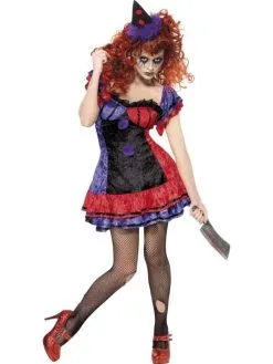 Circus Sinister Clown Dames Halloween Kostuum. Inbegrepen is de Clown Jurk en het Hoedje.