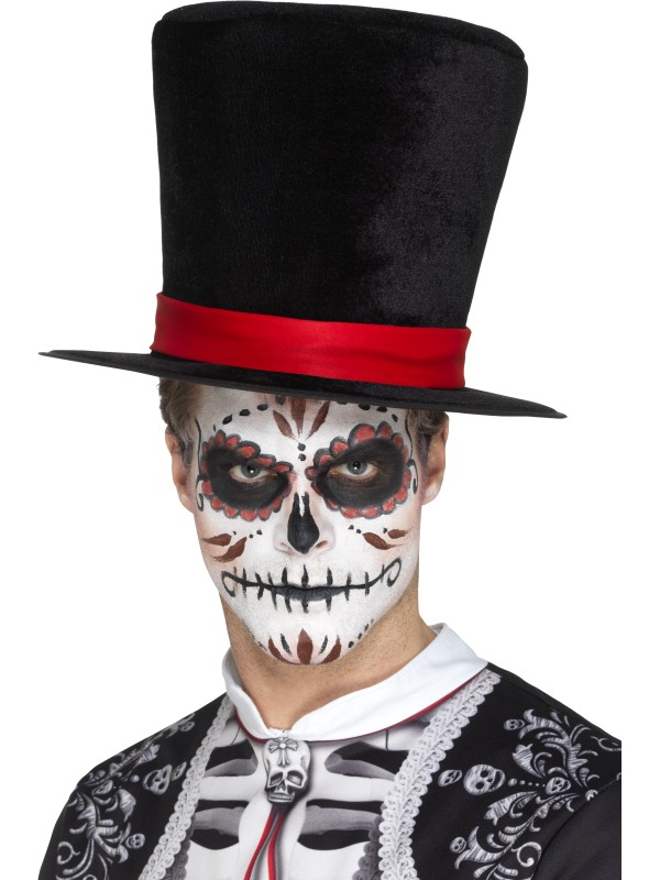 Maak jouw kostuum compleet met deze Zwarte Day of the Dead Top Hoed.