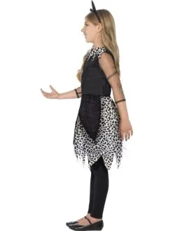Deluxe Midnight Cat Kostuum – de jurk bestaat uit een wit – zwart gevlekte onderjurk met aangehechte zwarte bovenjurk en zwart strikje. Ook de zwarte diadeem met kattenoren en de staart zijn inbegrepen. Om de outfit compleet te maken kun je bij ons ook schmink setjes, panty’s en andere accessoires bestellen!