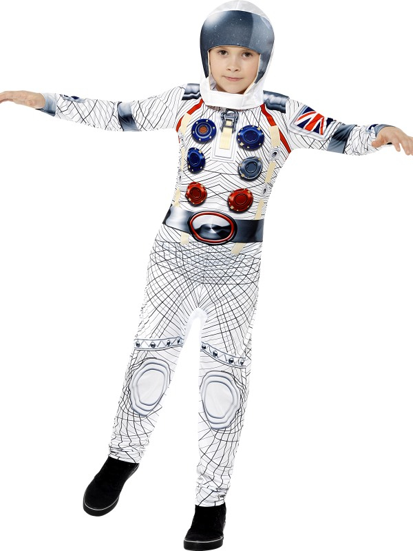 Deluxe Spaceman Kostuum, bestaande uit een jumpsuit met helm.