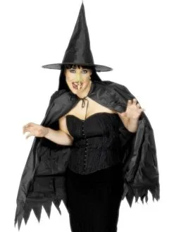 Heksen Verkleedsetje Met Cape, Heksenhoed & Neus.