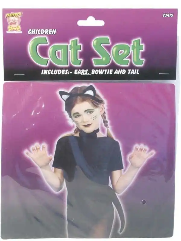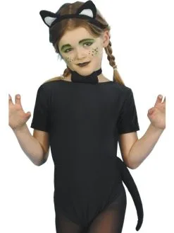 3-deligĀ Kinder Katten Verkleedsetje met oortjes, vlinderstrikje en staart.Ā