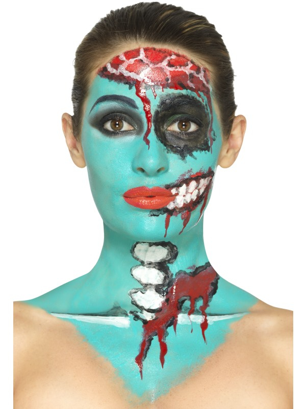 Creëer deze kleurrijke Halloween Zombie Look met de Liquid Latex Pot & Sponge Applicator.