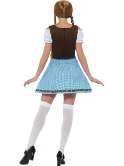 Een geweldige blauw/witte Olga Bavarian Costume, bestaande uit een jurk met short, top & Mock Suede Bodice. Leuk voor een Tirolerfeestje of het Oktoberfest.