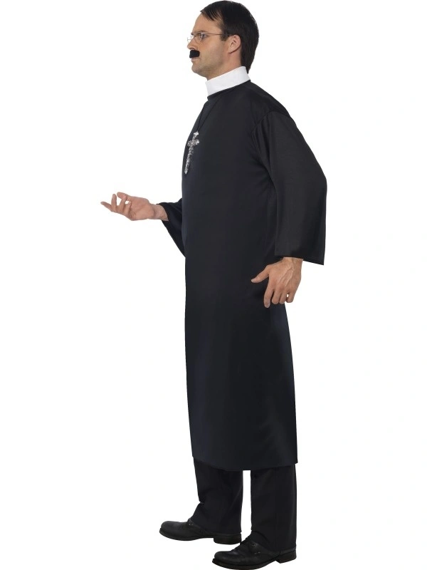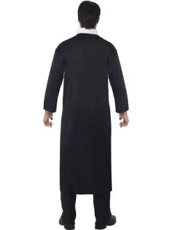 Priester Heren Kostuum, bestaande uit het lange zwarte gewaad met kraag.