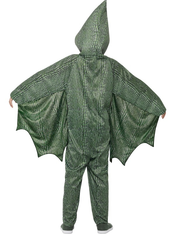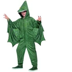 Voor de echte Dinosaurus Fan hebben wij dit geweldige Pterodactyl Dinosaur Kostuum. Dit kostuum bestaat uit een Groene Jumpsuit met aanhangende vleugels en capuchon. Leuk voor Carnaval of gewoon voor in de verkleedkist.