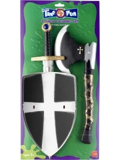 3 Piece Crusader Set, bestaande uit het schild, zwaard en bijl. Ook verkrijgbaar in Rood/Wit.