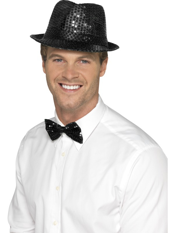 Een Zwarte Sequin Trilby Hoed met all over lovertjes. Maak de look compleet andere artikelen uit de Glamour collectie.
