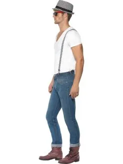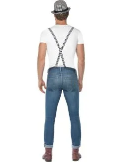 Ska Two Tone 2-delig Verkleedsetje. Inbegrepen is de zwart/wit geblokte hoed en de bretels.