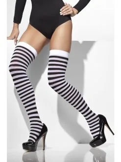 Wit – Zwart Gestreepte Kousen – mooie kousen voor bij diverse verkleedkostuums. De kousen zijn niet doorzichtig. Verkrijgbaar in 1 maat (one size fits most).