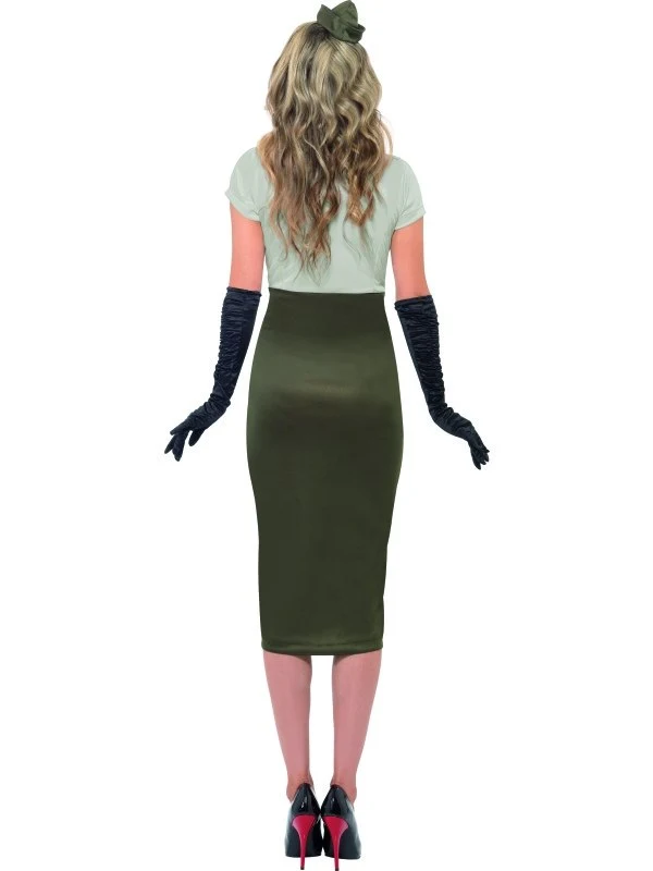 WW2 Army Pin Up Dames Legerpakje. Inbegrepen is de jurk met kokerrok en het hoedje. De handschoenen verkopen we los in onze webwinkel.
